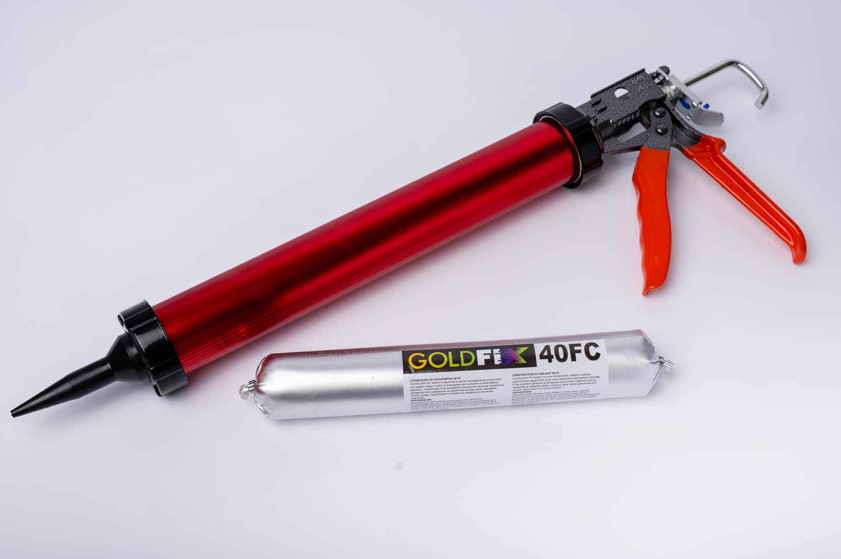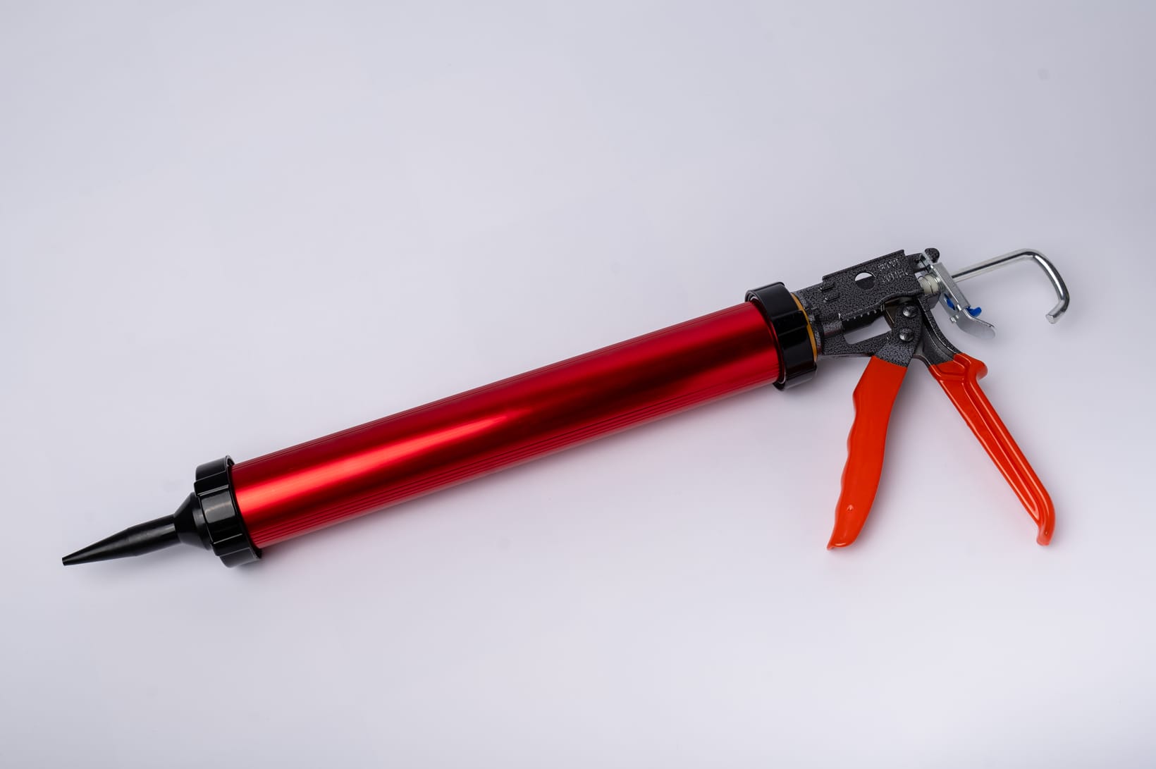 Пистолета е изцяло с здрав алуминиев корпус и силиконова дръжка. Уплътнява корпуса на 100% за да допуска при работа загуба на силикон в карпуса.